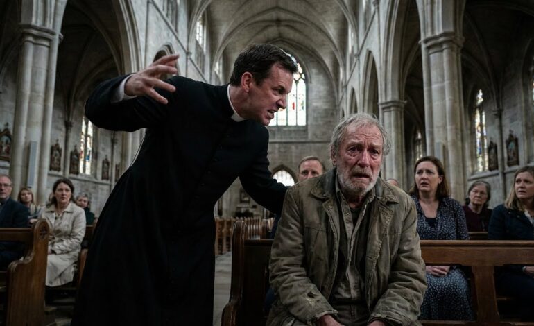 Ricardo se levantó y caminó hacia doña Teresa. Le quitó el suéter empapado, lo envolvió con su propio saco, y le sostuvo el rostro con ambas manos.